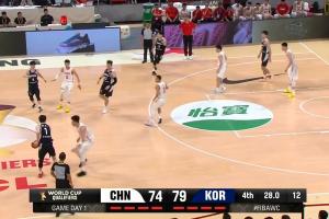 关键时刻,韩国男篮两罚不中给到中国男篮机会,但对手前后抢到三个前场篮板。