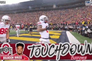 体育资讯11月30日讯 今日俄亥俄州立大学橄榄球队外接手布兰登·伊尼斯在对阵密歇根大学的比赛中完成达阵。