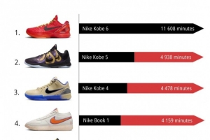 体育资讯12月2日讯 球鞋媒体kixstats统计了11月份NBA球员上脚球鞋的总时长排行,其中科比的三款球鞋霸榜前三,Kobe 6更是断档第一。