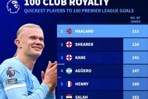 体育资讯12月3日讯 曼城在本轮英超对阵富勒姆,哈兰德首开纪录达成英超百球里程碑。《转会市场》也统计了英超历史最快达成百球场次榜。
