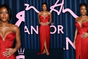 体育资讯12月3日讯 据《太阳报》报道,本周一晚上,在英国时尚大奖颁奖典礼上,萨卡的未婚妻托拉米·本森身穿一件低胸红裙,性感惊艳,以一身华丽造型在红毯上大放异彩。
