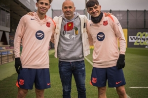 体育资讯12月5日讯 本周四,巴萨在俱乐部训练基地备战对阵贝蒂斯的西甲比赛,俱乐部传奇伊涅斯塔造访并和多名球员进行了亲切交流,这其中包括了佩德里、费尔明以及莱万等人。