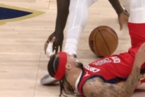 GIF-阿尔瓦拉多倒地拼抢时受伤,痛到在地上打滚