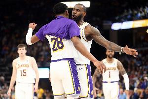 谈到詹姆斯最后时刻选择助攻自己完成绝杀,八村塁表示:“他确实做出了取舍,他简直就是篮球之神(he's literally the god,you know basketball),尤其是,我能看到这里的人们有多爱他,他做的任何事情,这里的人们都喜欢。所以,是的,他做得非常棒。”