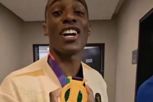 在感谢完陪伴自己尿检的队医之后,身着冠军夹克的法比奥终于走出了兴奋剂检测室,这时的时间是23点07分。虽然距离捧杯已经过去了2个多小时,但是安哥拉人依然难掩自己的激动情绪,他反复说着这样一句话:“我终于有冠军了,我的荣誉薄上终于从零变成1了,感谢大家,我等不及和他们一起庆祝了。”
