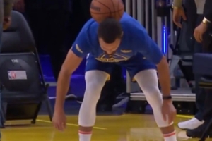 库里大秀足球技巧脖子接球 logo shot稳稳命中