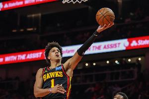 本场比赛,老鹰球员杰伦·约翰逊继续自己的出色发挥,并且三节没结束又拿到三双,在39分钟的时间里,投篮18中10,三分球5中2,罚球8中8,轰下30分12篮板12助攻2抢断的数据,正负值+7。