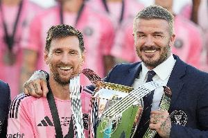 贝克汉姆:“我很希望梅西退役后能留在迈阿密生活,但莱奥告诉我,他只想着住在诺坎普附近。没有球员比他更爱巴塞罗那了 —— 你能在他的腿上看到巴萨队徽,甚至他的水瓶上都有,”
