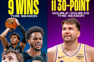 看看这组数据:卢卡本赛季已豪取11次30+得分两双。