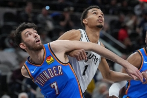 马刺球迷:画面感来了:圣诞大战,平局,最后5秒,SGA 18分,文班0封盖。SGA持球,文班主防。SGA出手被文班封盖,但自己抢回球权并造成犯规,两罚全中,拿到20分并赢下比赛。