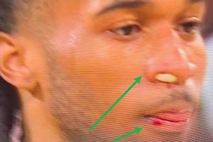体育资讯12月15日讯 昨日对雷霆的比赛中,卡斯尔嘴部和鼻子出血+鼻子还塞进了棉花,引发球迷好奇他是怎么受伤的。