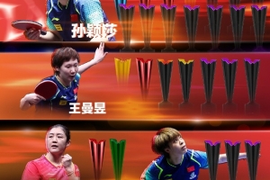 女单方面孙颖莎14次夺冠居首,王曼昱7冠第二,王艺迪3次夺冠排名第三。