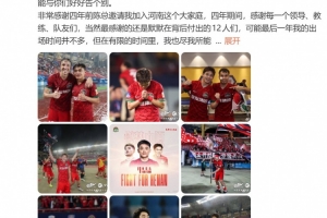 黄紫昌在社媒晒出了自己效力河南队期间的多张照片并配文写道: