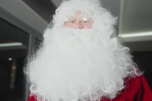 哈兰德在化妆师的帮助下,粘上浓密的白眉毛和白胡子,双颊抹上北极最著名居民特有的玫瑰红胭脂。随后他在外套里塞进一个大枕头。