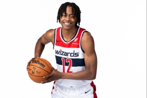 上半场比赛,奇才今年6号秀特雷-约翰逊发挥不错,进攻端里突外投很敢打,命中率也不错。