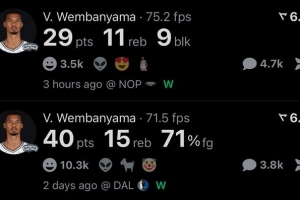 赛季前两场,文班合计砍下69分26篮板12盖帽,真是命中率68.2%,零失误!