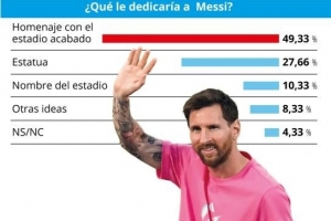 27.66%的球迷支持在球场外为其树立雕像,使其与克鲁伊夫和库巴拉并列。仅有10.33%的人赞同直接将球场更名为“里奥·梅西球场”。
