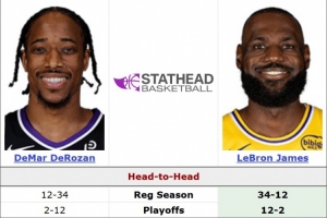 据统计,詹姆斯常规赛生涯面对德罗赞战绩来到35胜12负,季后赛为12胜2负(詹姆斯总的胜率高达77%)。