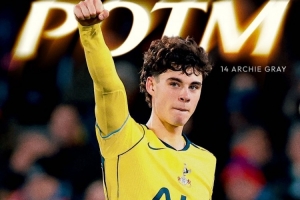 阿奇·格雷斩获职业生涯一线队首粒进球,热刺官方宣布,经过球迷的投票,他当选本场比赛队内最佳球员。