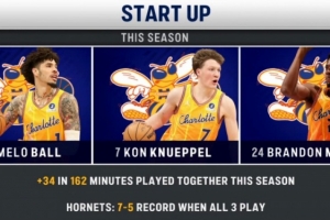同时,他们三人都出战的比赛,球队为7胜5负,而三人没能同时出战的比赛,4胜16负。