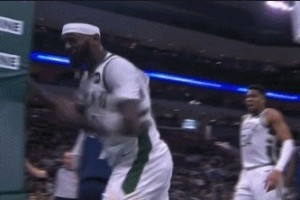 GIF-波蒂斯上篮被切没吹犯规相当不满 一记重拳怒锤篮架