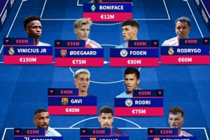 体育资讯1月1日讯 2025年已经过去,《转会市场》也统计了本年度身价下跌最多的一套阵容,巴萨、阿森纳、曼城、皇马各2将。