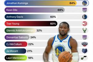 1、乔纳森·库明加(勇士)——84%