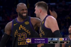 GIF-东契奇助攻拉拉维亚压哨三分~!!!