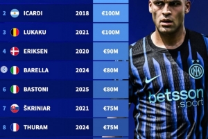 体育资讯10月25日讯 本轮意甲焦点战将在国米与那不勒斯展开。德转也盘点了两队队史身价榜,具体如下: