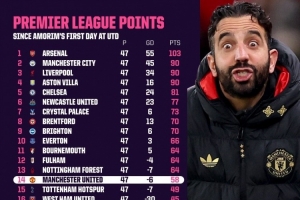 体育资讯1月5日讯 曼联官方宣布主帅阿莫林下课,据Opta统计,阿莫林执教曼联在英超拿到58分,同期排名英超第14位。