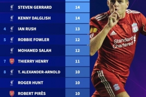 1、杰拉德(利物浦):14球