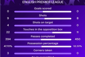 据Squawka统计,2015年8月之后,阿森纳vs利物浦的英超比赛首次互交白卷。