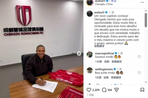 体育资讯1月9日讯 成都蓉城签下前海牛外援韦林顿·席尔瓦,球员更新社媒谈到自己的感受。