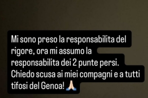 体育资讯1月9日讯 今天凌晨,热那亚在意甲1-1战平AC米兰,热那亚球员斯坦丘罚丢点球,赛后他在社交媒体发文道歉。