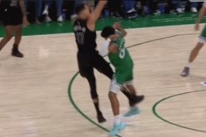 GIF-波特三分踢腿克里斯蒂躲闪不及,裁判先吹防守犯规,独行侠挑战后改判