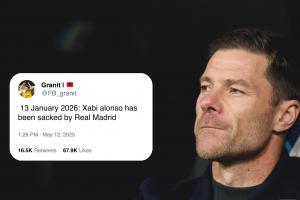 在去年5月12日——也就是罗马诺用“Here We Go”宣布阿隆索将执教皇马的当天,这位名叫Granit的球迷发帖预测道:“2026年1月13日,哈维·阿隆索被皇家马德里解雇。”