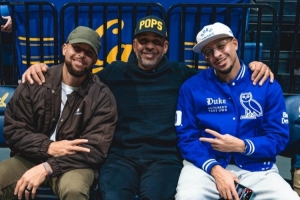 值得一提的是,杜克大学是赛斯·库里的母校,他穿着的也是杜克的外套,鞋子也选择了相近的配色。而在今天早些时候,黄蜂宣布将会退役戴尔·库里的30号球衣。