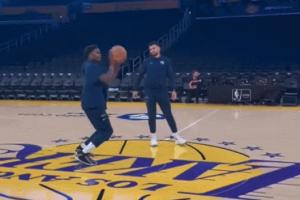 在对阵湖人的赛季揭幕战最后时刻,库里接小佩顿传球用超远三分杀死了比赛悬念。