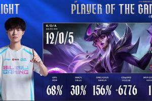 体育资讯1月17日讯 LPL第一赛段组内赛BLG击败AL扳平比分,knight辛德拉完美表现打出12-0-5的华丽战绩斩获本局MVP!