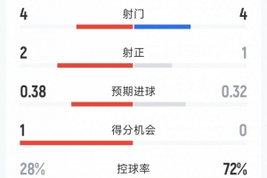 体育资讯1月17日讯 本轮英超曼市德比半场战罢,双方暂时互交白卷,以下为双方半场数据对比: