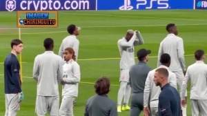 今天,摩纳哥全队在伯纳乌进行适应训练,球场大屏幕播放到C罗进球时,摩纳哥球员模仿了C罗的经典庆祝Siuuu。