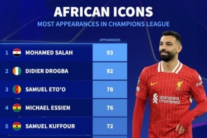 体育资讯1月20日讯 欧冠即将战火重燃,参加了非洲杯的萨拉赫已经归队训练,他能否出战本场比赛值得关注。数据统计显示,萨拉赫已经是欧冠赛事非洲球员出场王。