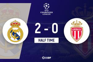 体育资讯1月21日讯 北京时间1月21日04:00,欧冠联赛阶段第7轮皇马迎战摩纳哥的比赛在伯纳乌球场进行,上半场巴尔韦德助攻姆巴佩闪击得手,随后维尼修斯助攻姆巴佩推射扩大比分,特泽远射中楣,半场结束,皇马2-0摩纳哥。