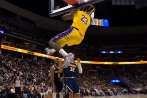 GIF-詹姆斯战车上篮再现