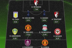 后卫:卡什(阿斯顿维拉,8.06分)、范德芬(热刺,8.94分)、丹索(热刺,8.06分)、阿德里安-特吕费尔(伯恩茅斯,8.07分)