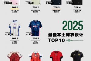不懂球正式发布2025最佳本土球衣设计奖,由51名业内人士组成的评审团,最终经过投票评选出2025最佳本土球衣设计TOP10。最终排名如下: